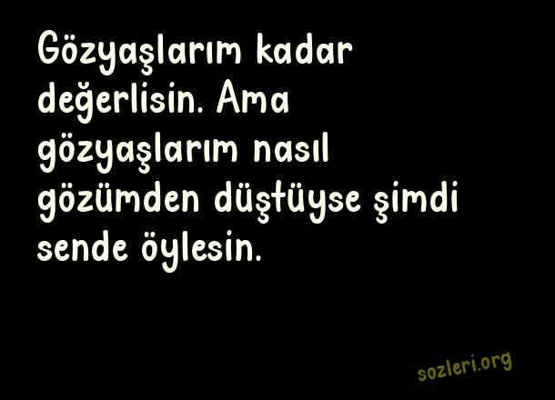 Gözyaşlarım kadar değerlisin. Ama gözyaşlarım nasıl gözümden düştüyse şimdi sende öylesin. ( Değerlisin )