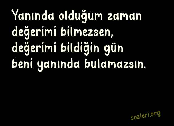 Yanında olduğum zaman değerimi bilmezsen, değerimi bildiğin gün beni yanında bulamazsın. ( Değerlisin )