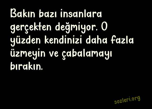 Bakın bazı insanlara gerçekten değmiyor. O yüzden kendinizi daha fazla üzmeyin ve çabalamayı bırakın. ( Değmeyen İnsanlara Sözler )