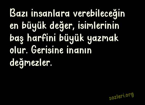 Bazı insanlara verebileceğin en büyük değer, isimlerinin baş harfini büyük yazmak olur. Gerisine inanın değmezler. ( Değmeyen İnsanlara Sözler )