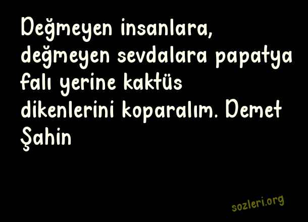 Değmeyen insanlara, değmeyen sevdalara papatya falı yerine kaktüs dikenlerini koparalım. Demet Şahin ( Değmeyen İnsanlara Sözler )