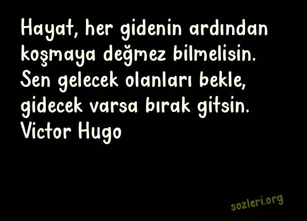 Hayat, her gidenin ardından koşmaya değmez bilmelisin. Sen gelecek olanları bekle, gidecek varsa bırak gitsin. Victor Hugo ( Değmeyen İnsanlara Sözler )