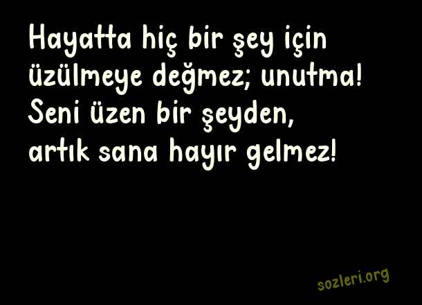 Hayatta hiç bir şey için üzülmeye değmez; unutma! Seni üzen bir şeyden, artık sana hayır gelmez! ( Değmeyen İnsanlara Sözler )