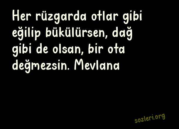 Her rüzgarda otlar gibi eğilip bükülürsen, dağ gibi de olsan, bir ota değmezsin. Mevlana ( Değmeyen İnsanlara Sözler )