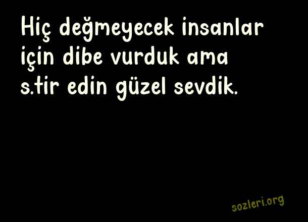 Hiç değmeyecek insanlar için dibe vurduk ama s.tir edin güzel sevdik. ( Değmeyen İnsanlara Sözler )