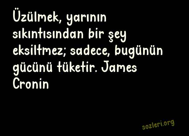 Üzülmek, yarının sıkıntısından bir şey eksiltmez; sadece, bugünün gücünü tüketir. James Cronin ( Değmeyen İnsanlara Sözler )