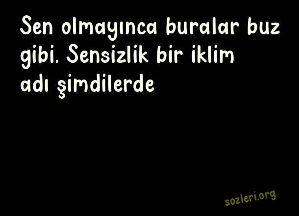 Sen olmayınca buralar - Deli Aşk Sözleri .. Sen olmayınca buralar buz gibi. Sensizlik bir iklim adı şimdilerde… ( Deli Aşk )