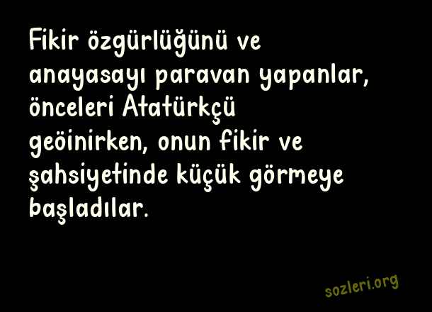 Fikir özgürlüğünü ve anayasayı paravan yapanlar, önceleri Atatürkçü geöinirken, onun fikir ve şahsiyetinde küçük görmeye başladılar. ( Deniz Gezmiş )