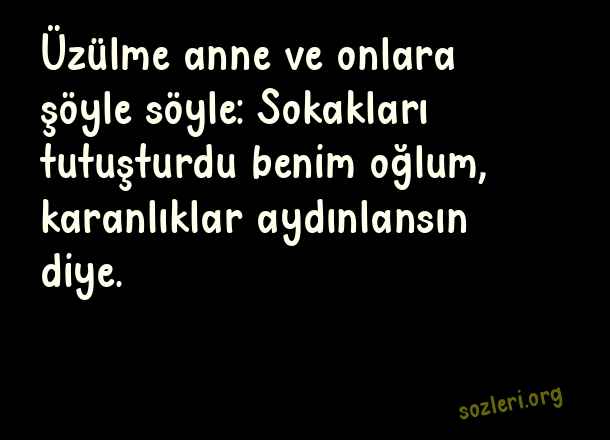 Üzülme anne ve onlara şöyle söyle: Sokakları tutuşturdu benim oğlum, karanlıklar aydınlansın diye. ( Deniz Gezmiş )