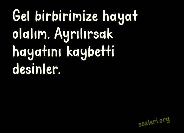 Gel birbirimize hayat - Derin Aşk Sözleri .. Gel birbirimize hayat olalım. Ayrılırsak hayatını kaybetti desinler. ( Derin Aşk )