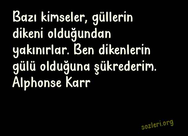 Bazı kimseler, güllerin dikeni olduğundan yakınırlar. Ben dikenlerin gülü olduğuna şükrederim. Alphonse Karr ( Diken )