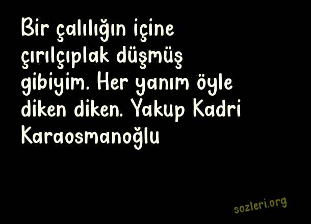Bir çalılığın içine çırılçıplak düşmüş gibiyim. Her yanım öyle diken diken. Yakup Kadri Karaosmanoğlu ( Diken )