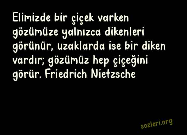 Elimizde bir çiçek varken gözümüze yalnızca dikenleri görünür, uzaklarda ise bir diken vardır; gözümüz hep çiçeğini görür. Friedrich Nietzsche ( Diken )
