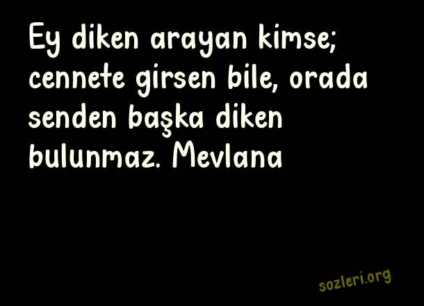 Ey diken arayan kimse; cennete girsen bile, orada senden başka diken bulunmaz. Mevlana ( Diken )