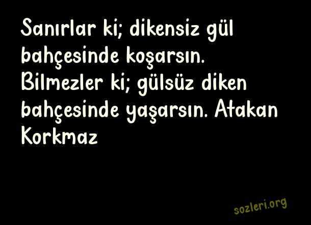Sanırlar ki; dikensiz gül bahçesinde koşarsın. Bilmezler ki; gülsüz diken bahçesinde yaşarsın. Atakan Korkmaz ( Diken )