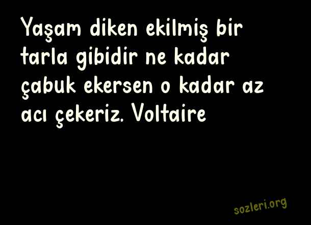 Yaşam diken ekilmiş bir tarla gibidir ne kadar çabuk ekersen o kadar az acı çekeriz. Voltaire ( Diken )