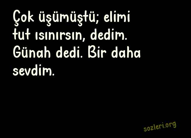 Çok üşümüştü; elimi - Dini Aşk Sözleri .. Çok üşümüştü; elimi tut ısınırsın, dedim. Günah dedi. Bir daha sevdim. ( Dini Aşk )