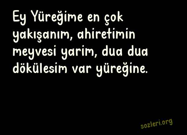 Ey Yüreğime en - Dini Aşk Sözleri .. Ey Yüreğime en çok yakışanım, ahiretimin meyvesi yarim, dua dua dökülesim var yüreğine. ( Dini Aşk )