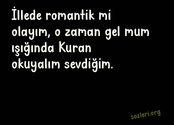 İllede romantik mi - Dini Aşk Sözleri .. İllede romantik mi olayım, o zaman gel mum ışığında Kuran okuyalım sevdiğim. ( Dini Aşk )