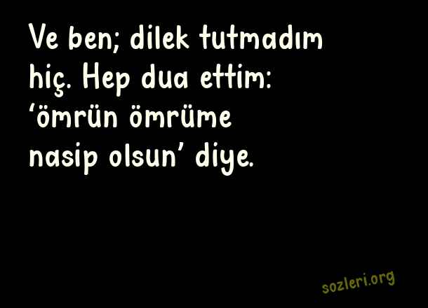 Ve ben; dilek - Dini Aşk Sözleri .. Ve ben; dilek tutmadım hiç. Hep dua ettim: ‘ömrün ömrüme nasip olsun’ diye. ( Dini Aşk )