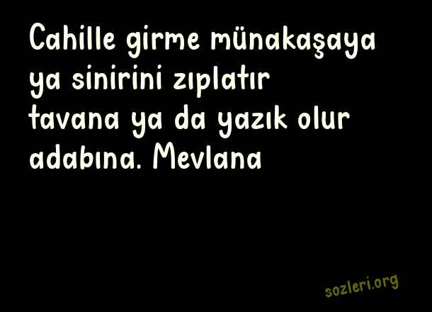 Cahille girme münakaşaya ya sinirini zıplatır tavana ya da yazık olur adabına. Mevlana ( Dini Kapak Sözler )
