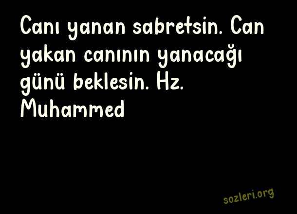 Canı yanan sabretsin. Can yakan canının yanacağı günü beklesin. Hz. Muhammed ( Dini Kapak Sözler )