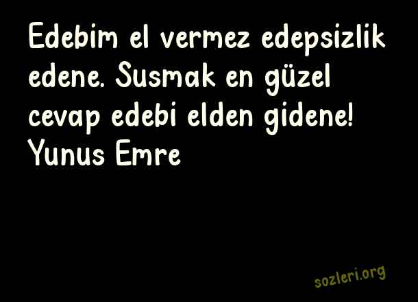 Edebim el vermez küstahlık edene; susmak en güzel cevap, edebi elden gidene! Yunus Emre