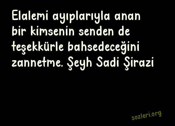 Elalemi ayıplarıyla anan bir kimsenin, senden de teşekkürle bahsedeceğini zannetme. Sadi Şirazi