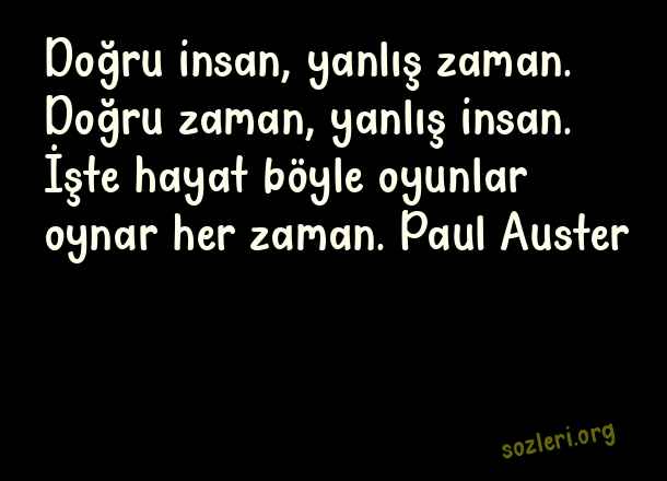 Doğru insan, yanlış zaman. Doğru zaman, yanlış insan. İşte hayat böyle oyunlar oynar her zaman. Paul Auster ( Doğru İnsan )