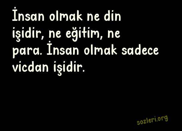 İnsan olmak ne din işidir, ne eğitim, ne para. İnsan olmak sadece vicdan işidir. ( Doğru İnsan )