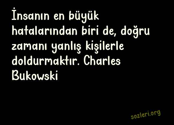 İnsanın en büyük hatalarından biri de, doğru zamanı yanlış kişilerle doldurmaktır. Charles Bukowski ( Doğru İnsan )