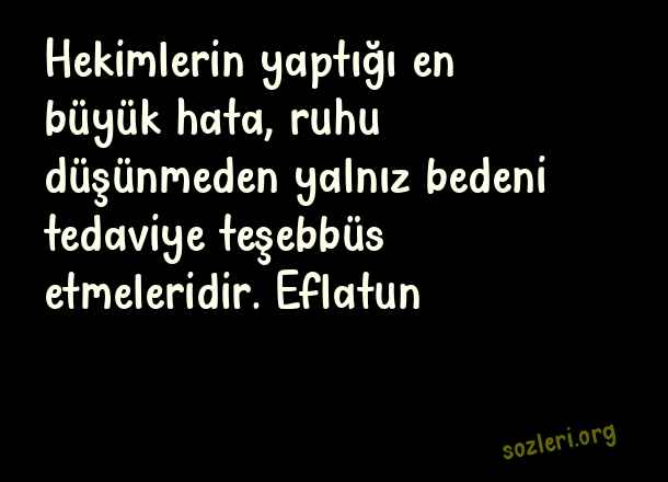Hekimlerin yaptığı en büyük hata, ruhu düşünmeden yalnız bedeni tedaviye teşebbüs etmeleridir. Eflatun ( Doktorlar )