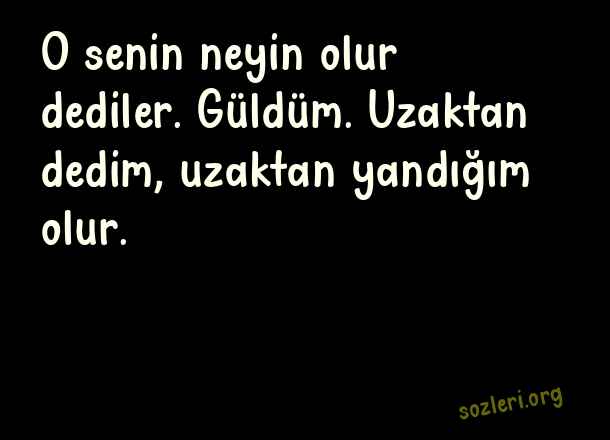 O senin neyin olur dediler. Güldüm. Uzaktan dedim, uzaktan yandığım olur. ( Dokunaklı Sözler )