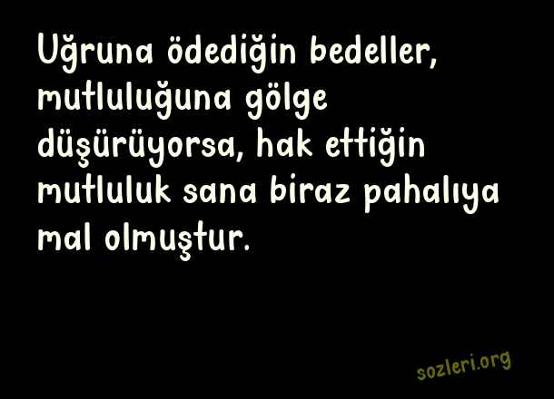 Uğruna ödediğin bedeller, mutluluğuna gölge düşürüyorsa, hak ettiğin mutluluk sana biraz pahalıya mal olmuştur. ( Dokunaklı Sözler )