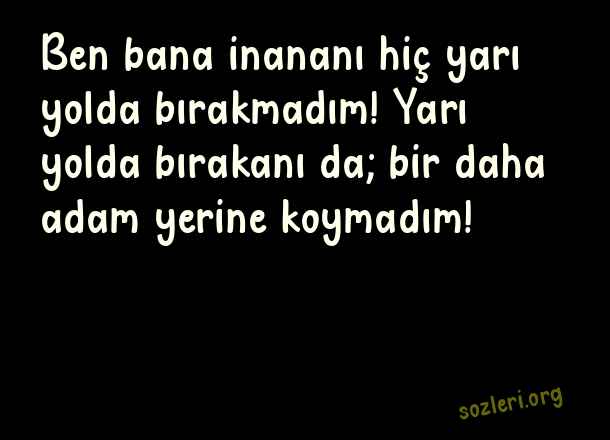Ben bana inananı hiç yarı yolda bırakmadım! Yarı yolda bırakanı da; bir daha adam yerine koymadım! ( Dost Satanlara Sözler )
