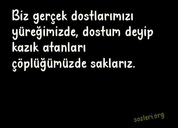 Biz gerçek dostlarımızı yüreğimizde, dostum deyip kazık atanları çöplüğümüzde saklarız. ( Dost Satanlara Sözler )