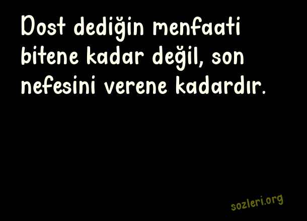 Dost dediğin menfaati bitene kadar değil, son nefesini verene kadardır. ( Dost Satanlara Sözler )