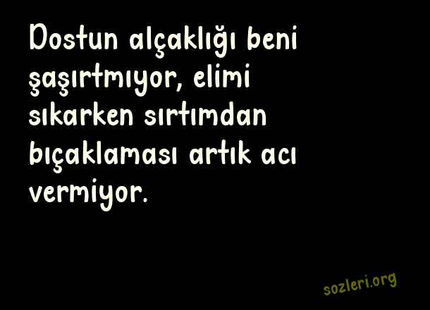 Dostun alçaklığı beni şaşırtmıyor, elimi sıkarken sırtımdan bıçaklaması artık acı vermiyor. ( Dost Satanlara Sözler )