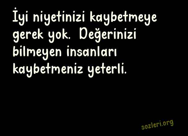 İyi niyetinizi kaybetmeye gerek yok. Değerinizi bilmeyen insanları kaybetmeniz yeterli. ( Dost Satanlara Sözler )