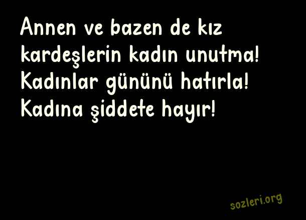 Annen ve bazen de kız kardeşlerin kadın unutma! Kadınlar gününü hatırla! Kadına şiddete hayır! ( 8 Mart Dünya Kadınlar Günü )