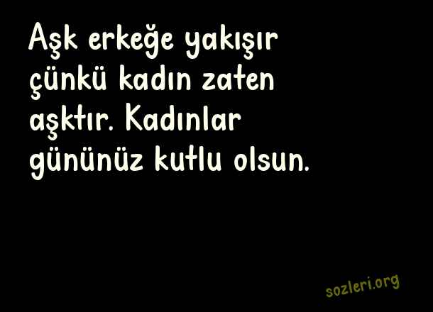 Aşk erkeğe yakışır çünkü kadın zaten aşktır. Kadınlar gününüz kutlu olsun. ( 8 Mart Dünya Kadınlar Günü )