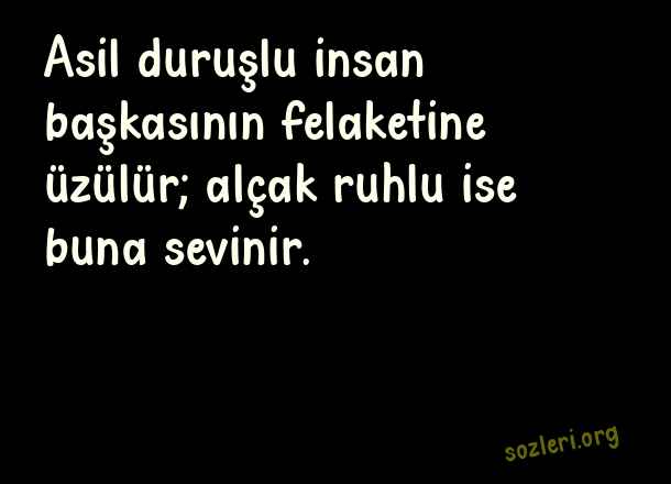 Asil duruşlu insan başkasının felaketine üzülür; alçak ruhlu ise buna sevinir. ( Duruş )