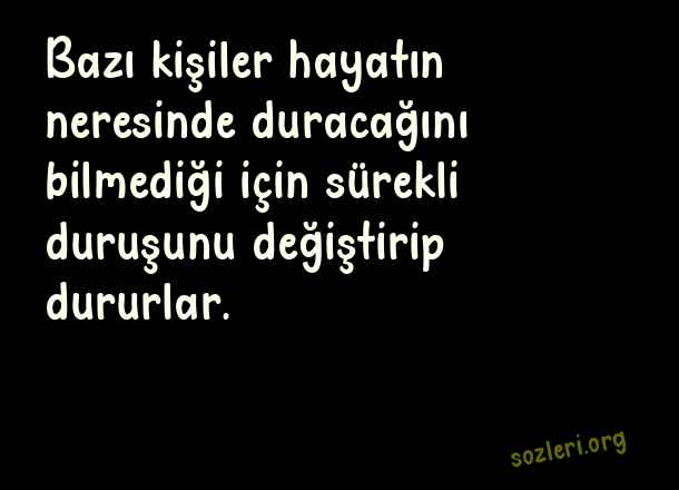 Bazı kişiler hayatın neresinde duracağını bilmediği için sürekli duruşunu değiştirip dururlar. ( Duruş )