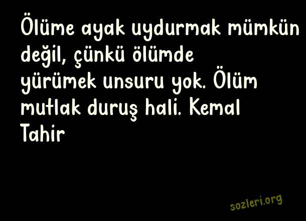 Ölüme ayak uydurmak mümkün değil, çünkü ölümde yürümek unsuru yok. Ölüm mutlak duruş hali. Kemal Tahir ( Duruş )