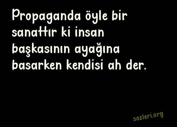 Propaganda öyle bir sanattır ki insan başkasının ayağına basarken kendisi ah der. ( Düşündüren Kısa Ünlü Sözler )