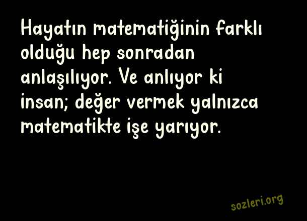 Hayatın matematiğinin farklı olduğu hep sonradan anlaşılıyor. Ve anlıyor ki insan; değer vermek yalnızca matematikte işe yarıyor. ( Duygulu Mesajlar )