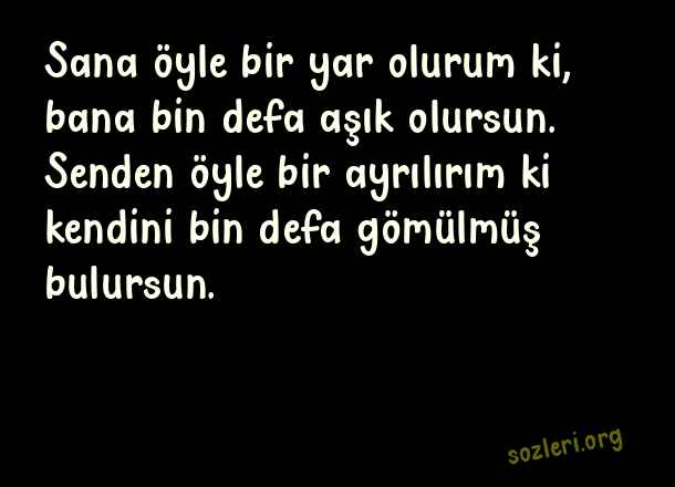 Sana öyle bir yar olurum ki, bana bin defa aşık olursun. Senden öyle bir ayrılırım ki kendini bin defa gömülmüş bulursun. ( Duygulu Mesajlar )