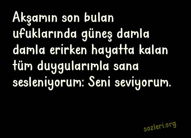 Akşamın son bulan ufuklarında güneş damla damla erirken hayatta kalan tüm duygularımla sana sesleniyorum: Seni seviyorum. ( Duygusal Aşk )
