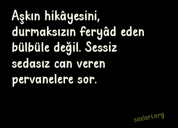Aşkın hikâyesini, durmaksızın feryâd eden bülbüle değil. Sessiz sedasız can veren pervanelere sor. ( Duygusal Sevgi )
