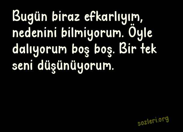 Bugün biraz efkarlıyım, nedenini bilmiyorum. Öyle dalıyorum boş boş. Bir tek seni düşünüyorum. ( Efkarlı Yalnızlık )
